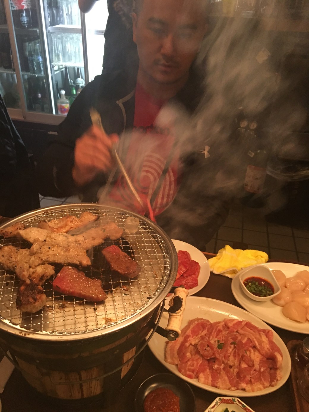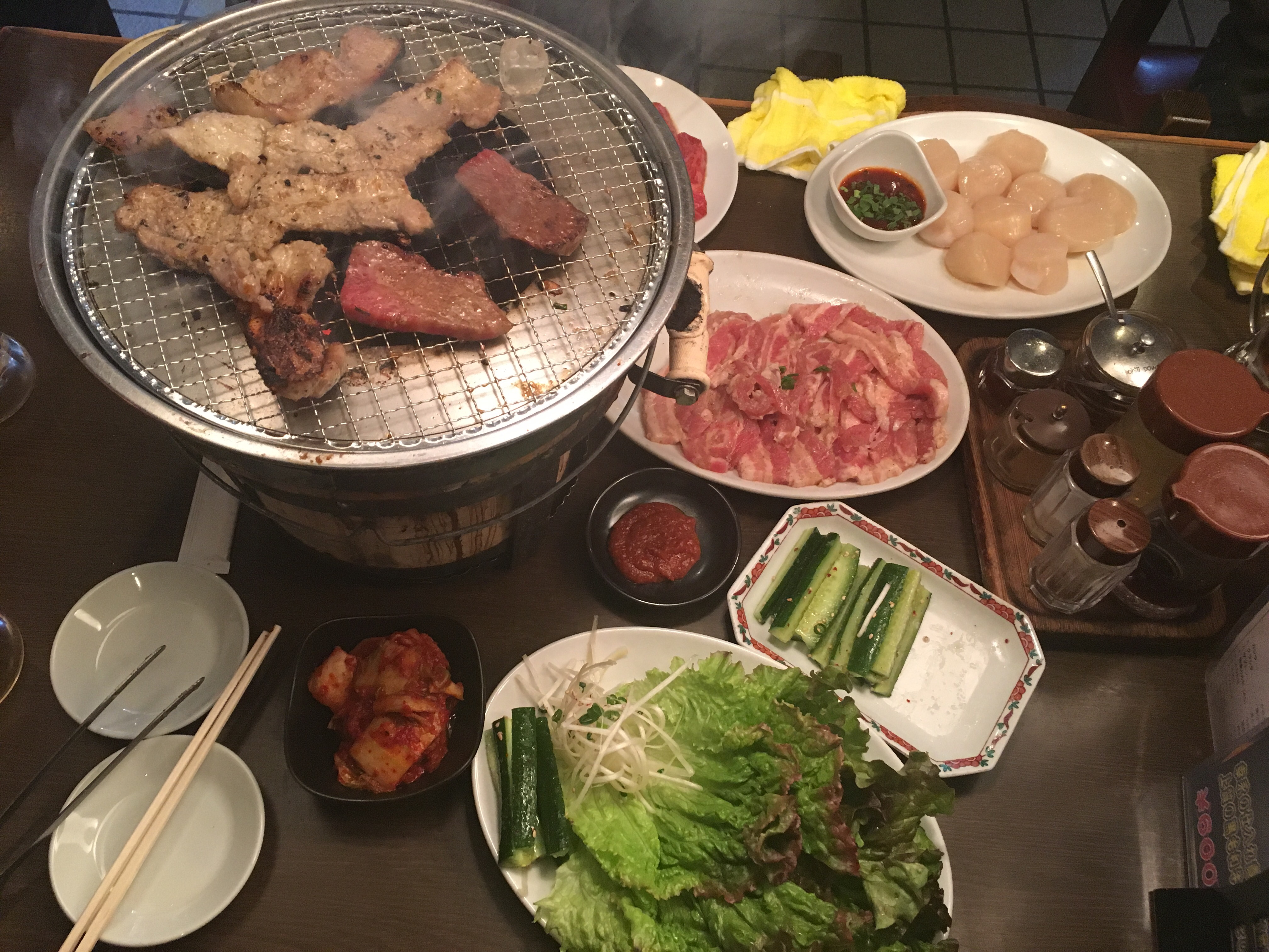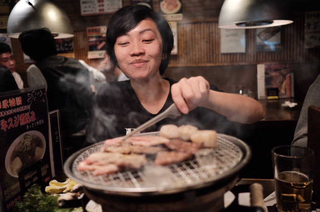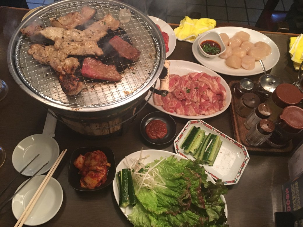 – Arrived at our super clean studio Airbnb. Super amazed how they can fit everything into such a tiny space. Showered cuz my hair was super flat. Went around at 9 to scout for food and decided on a charcolal grilled meat restaurant. Was so confused about portion (how much is 100 gram?) and kept changing order at the grilled meat restaurant (the poor waiter).
