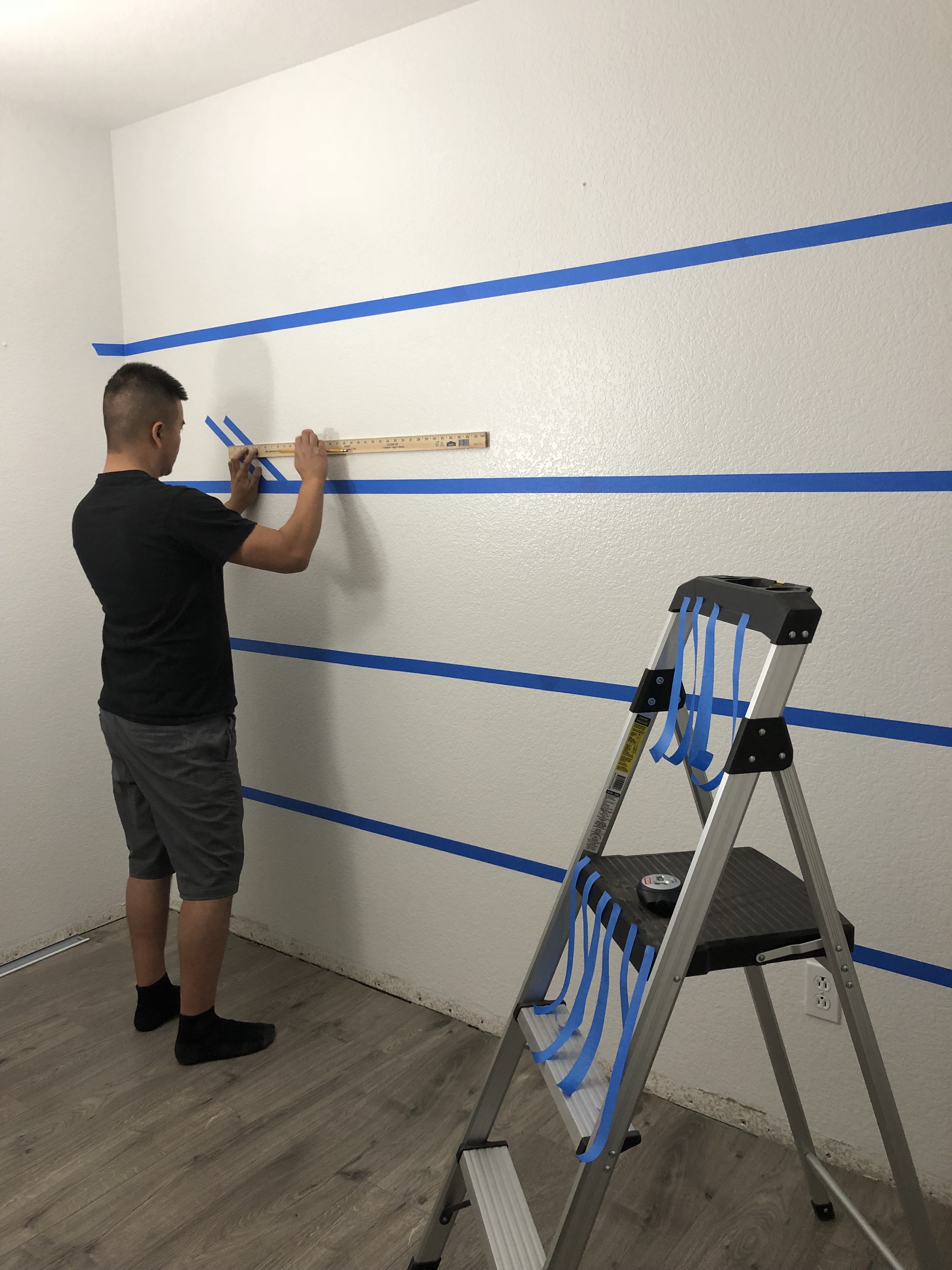*** before painting, make sure all of the tape are pressed really firmly against the wall. This way there’s less chance of the paint seeping through and ruin the lines.
