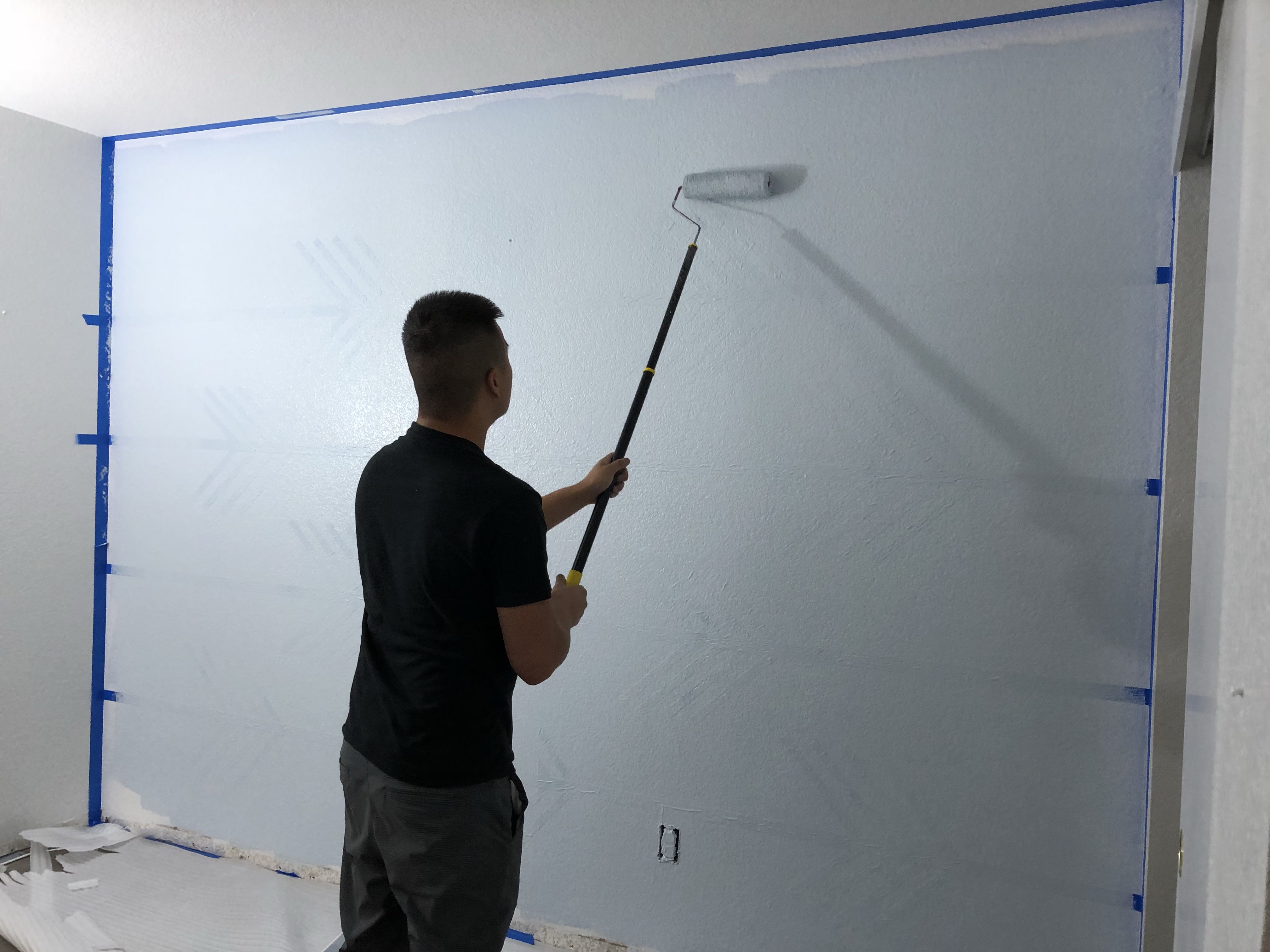 To speed up the drying process, I had a fan blowing back and forth (since it was 9pm when we got done with the first coat.)