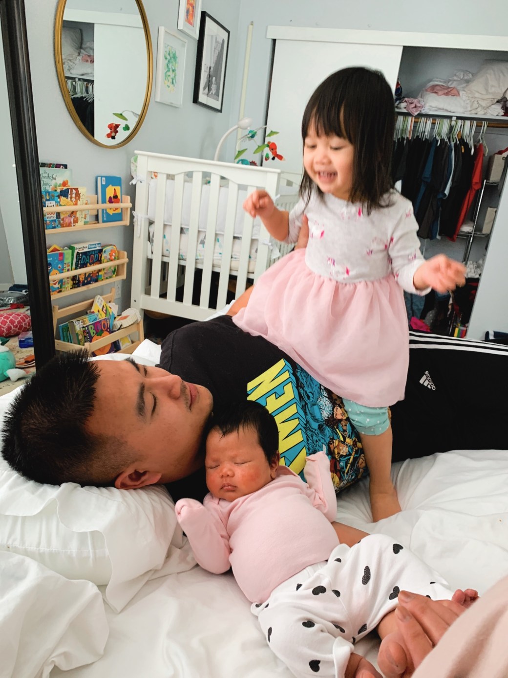 I thought doing some cute set up to take pictures for her 1 month milestone but haven’t got a chance to get to it yet. Henry went back to work full time starting on week 3 and I have been sooooo busy with the girls that I barely had time for anything else. In the afternoon when I can, I would steal away for 2-4 hours to work. Otherwise it’s tending to the girls until hubby gets home at 1pm, eat lunch together, work, make dinner, bath time or loading the dishwasher, then nighttime is spent entertaining the girls again and repeat all over again each day.